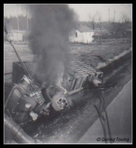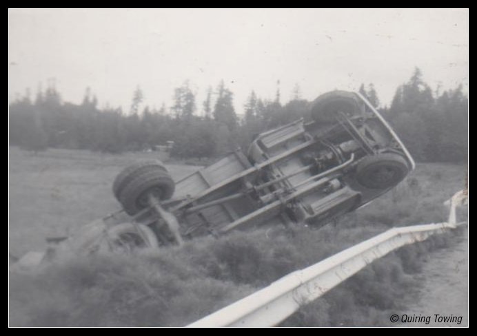 Quiring Towing: Northbend BC Logging truck over bank